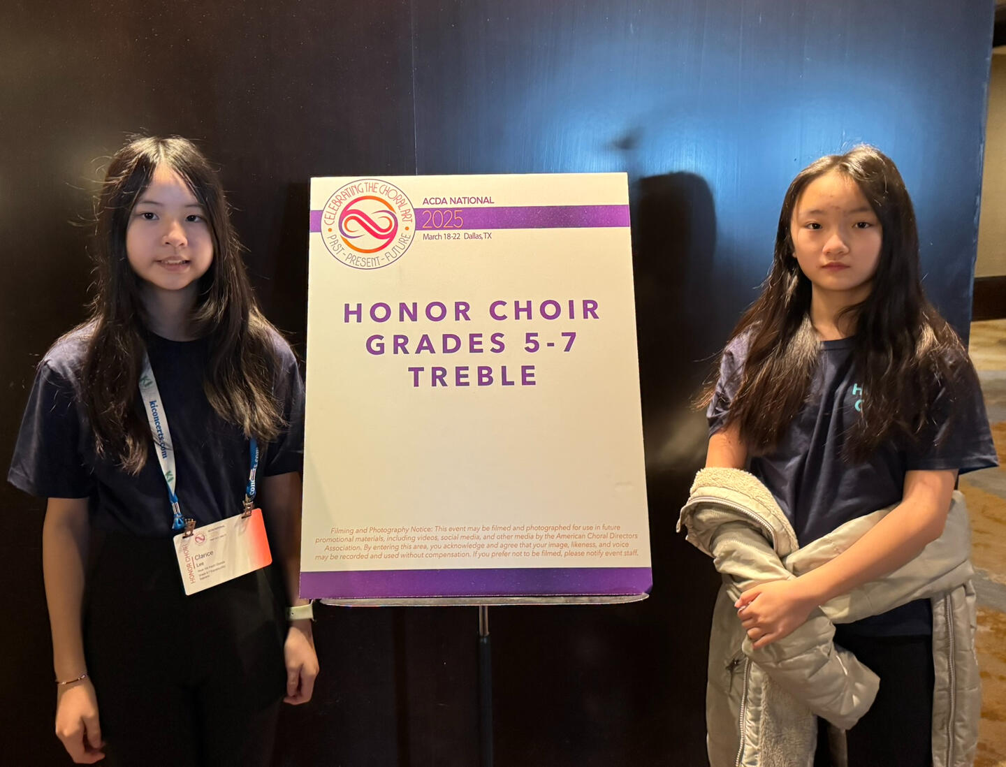 Congratulations to the following four Hwa-Yin members who were selected for the 2025 ACDA National Honor Choirs which will take place in Dallas, TX from March 19- March 22, 2025.High School SATB Honor Choir: Lanzhen CuiHigh School TTBB Honor Choir: Isaac YuElementary Honor Choir: Clarice Lee, Lily Xing
